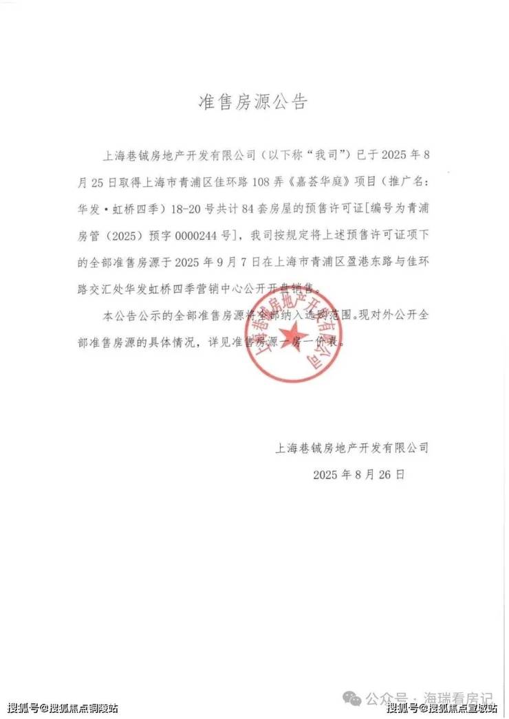 尊敬的意向客户、购房者:为保障您的合法购房权益,规避中介陷阱、虚假信息误导,华发虹桥四季官方正式公示唯一认证服务渠道,所有服务统一直连,信息经开发商权威核验,真实有效、公开透明!