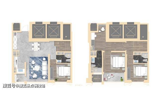 其中2#为超高层,北向可观小区绿化和苏河景观,高区可瞰三件套盛景。