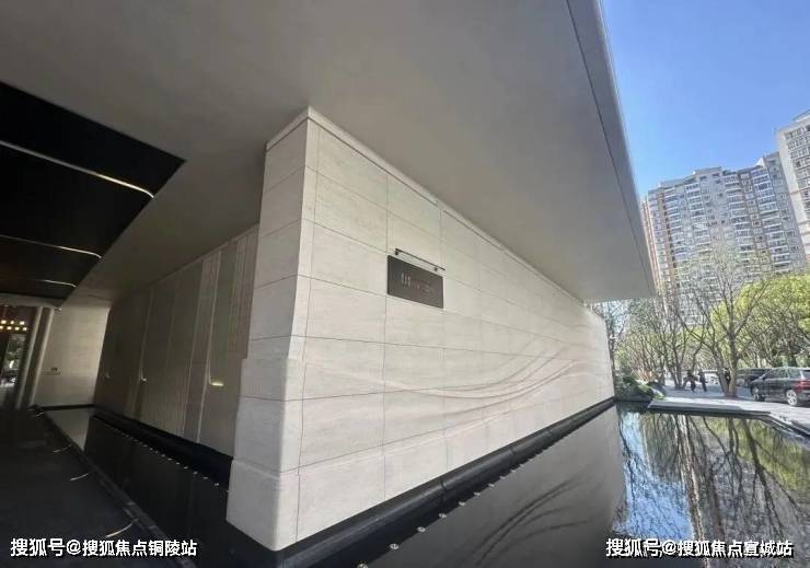 稍微走近一点就能看到采用了大量的弧形元素和石材材料。石材的质感本身就厚重,在上面叠加类似海浪的线条弱化了厚重感,反而显得轻盈。