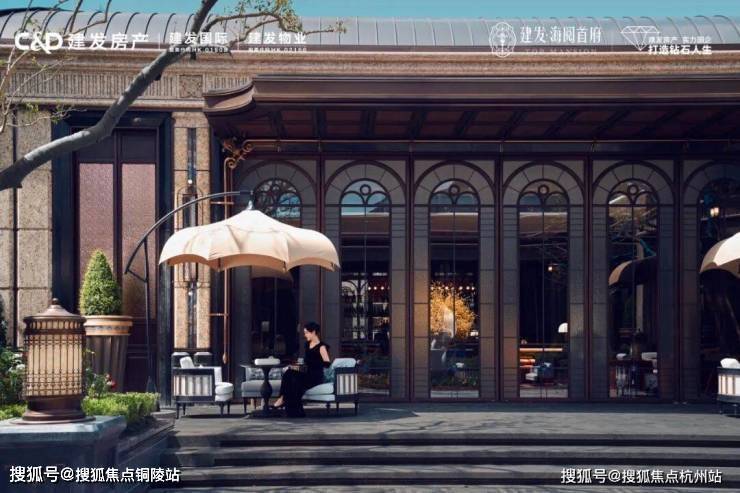 这是项目的门头实景图,整体在外观上非常庄严大气,超10米的整块复古黄铜锤纹牌匾上,写着【建发海阅首府】6个大字,这经典的阵列柱式,有没有让你想到什么?