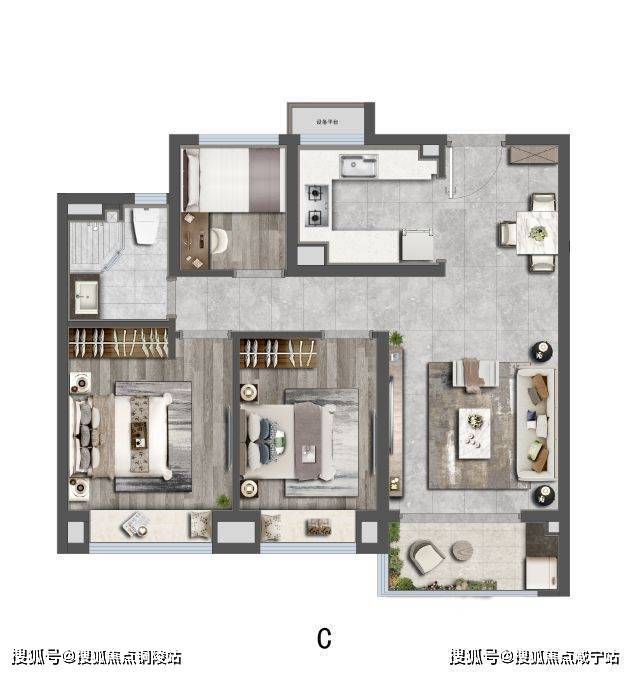 社区方面,项目打造全龄段,全维度活力健康住区,以“两轴一心、一环五区”园林景观规制约7500㎡中央景观,高配约600米环形健身步道。