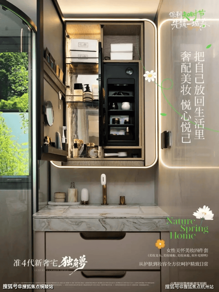 更难得的是,项目首创的「她享主义」空间,精配美妆4件套(美妆龙头、美妆镜柜、美妆冰箱、双补光照明)。女主人清晨的梳妆打扮,从此拥有更舒适、更专业的专属空间。