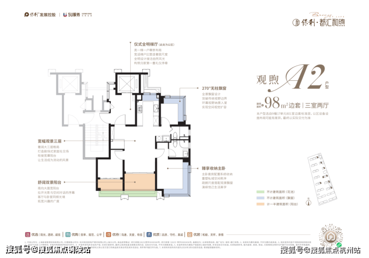 建面约98㎡精致3房:双阳台+景观花池(市面通常110㎡起步),整体附赠约23㎡,类一梯一户的设计让刚改直接越级。