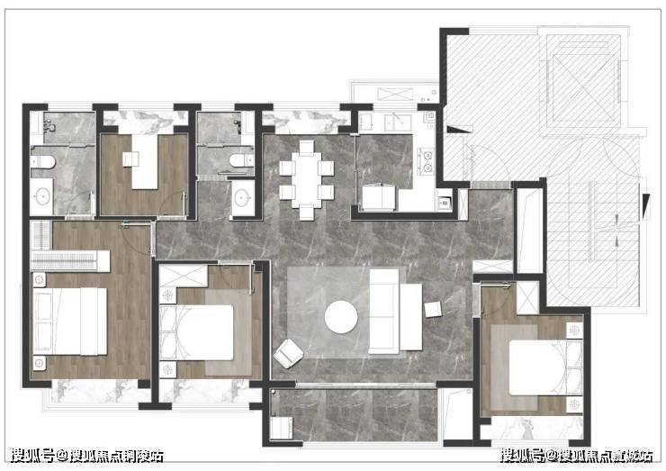 建面约136㎡的4房2厅2卫更是有豪宅大平层的空间感和功能划分。