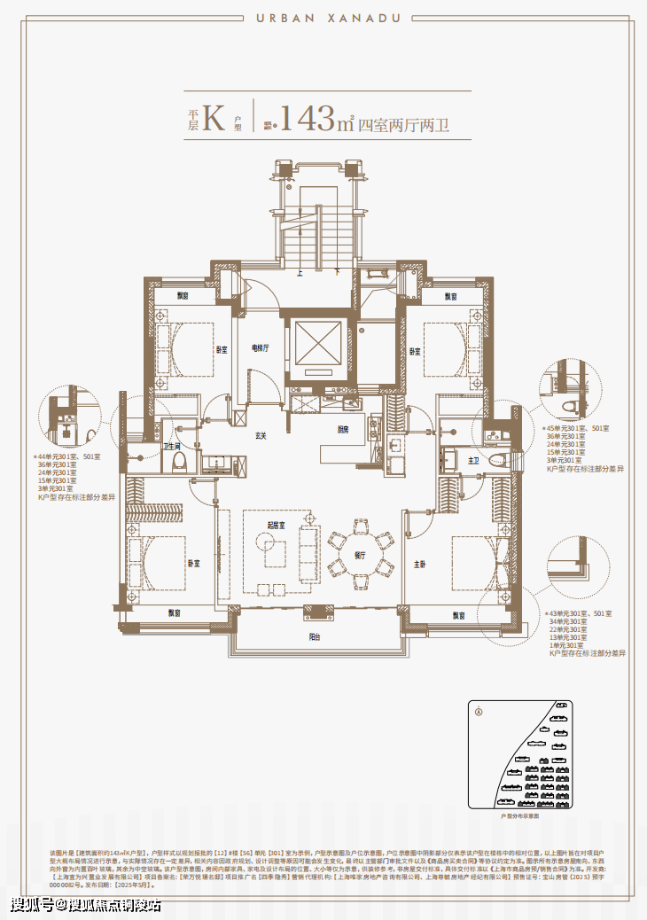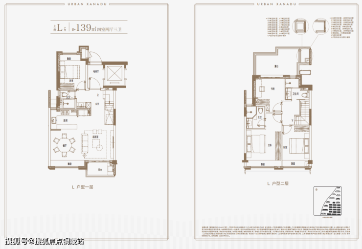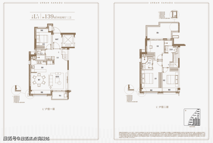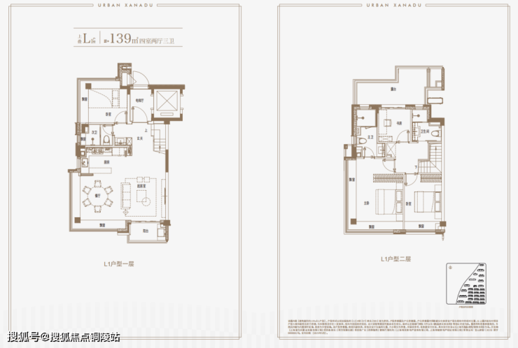 建面约139㎡上叠户型,三层是会客区,四层是居住区,阳台+露台+多个飘窗设计,附加空间非常大,在别墅类产品中实属罕见!