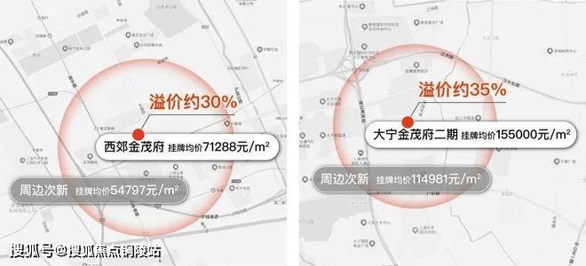 大宁金茂府二期挂牌约15.5万/㎡,周边次新整体挂牌约11.5万/㎡,金茂府有约35%溢价;