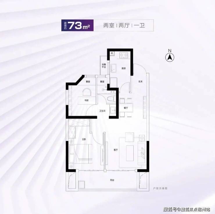 建面约73m²2房2厅1卫
