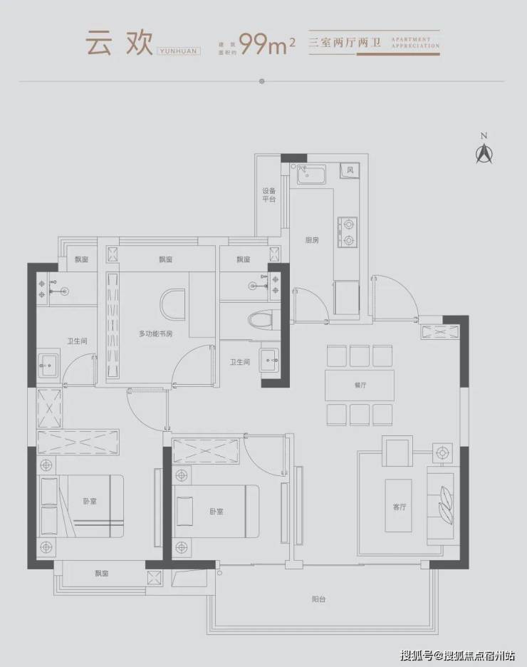 雅致三房:满足三口之家所需,北向房间可改造书房,理想生活一步到位