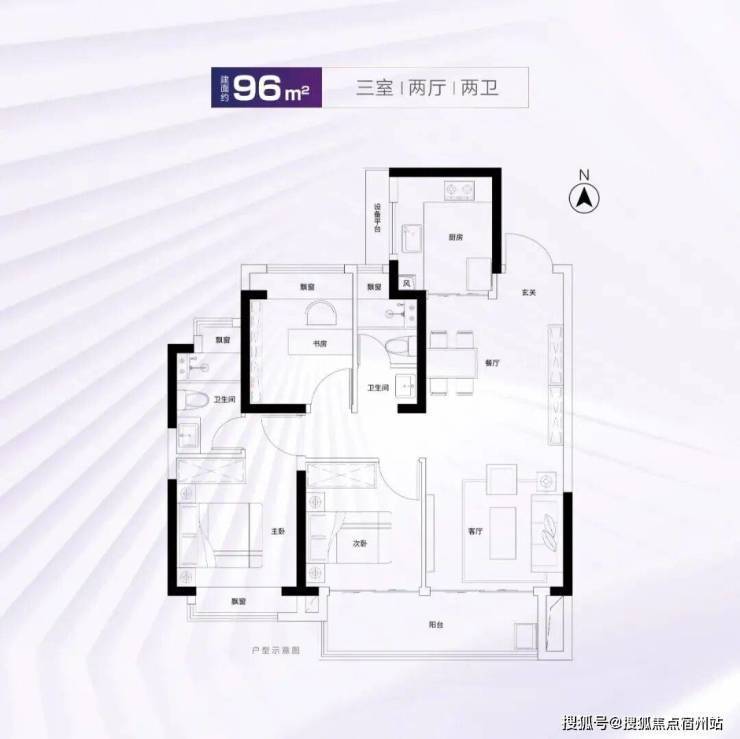 建面约96m²3房2厅2卫