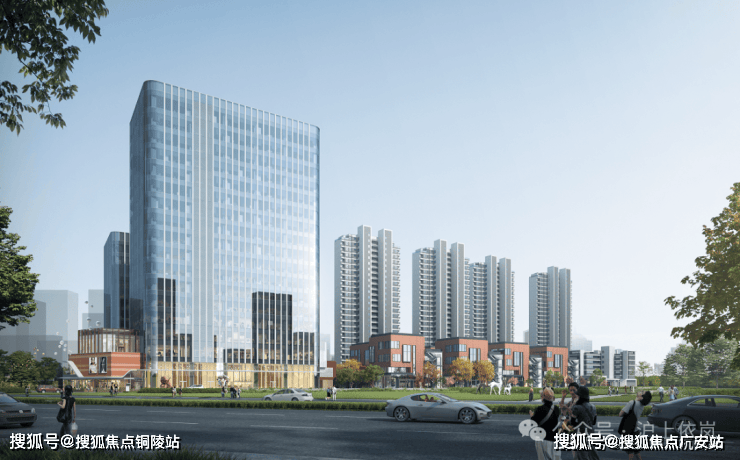 看颜值!项目外立面玻璃幕墙+金色格栅塔冠,远远望去,宛如镶嵌在城市间的水晶,质感满满!