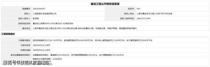 公示发布后不久,上海市建设工程交易服务中心随即发布了该地块的建设工程公开招标信息。