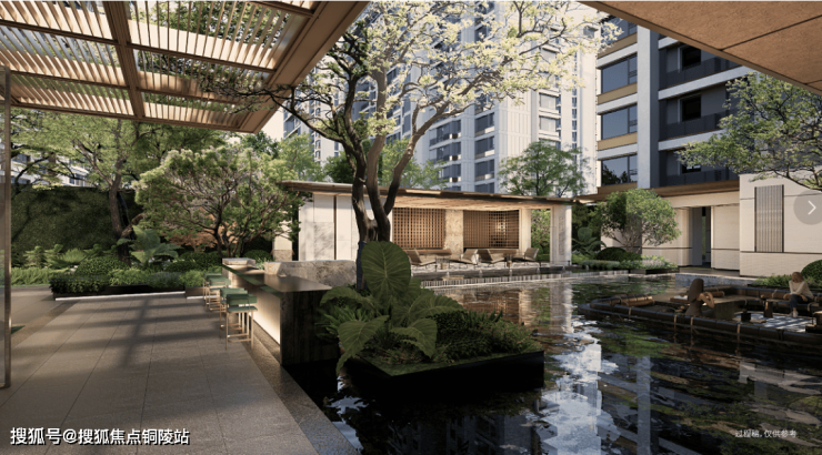 约160m的中央花园轴,以翠影草坪为核心,串联尊享迎厅、水榭林涧、星际乐园、悠活天地等功能空间,将公园生活引入自家社区。