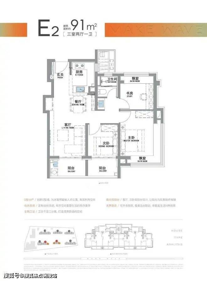 “南向双阳台+南北双飘窗”,构筑真3房户型!