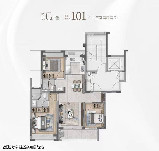 建面约101㎡的F和G户型都是市面上备受认可的飞机经典款户型。