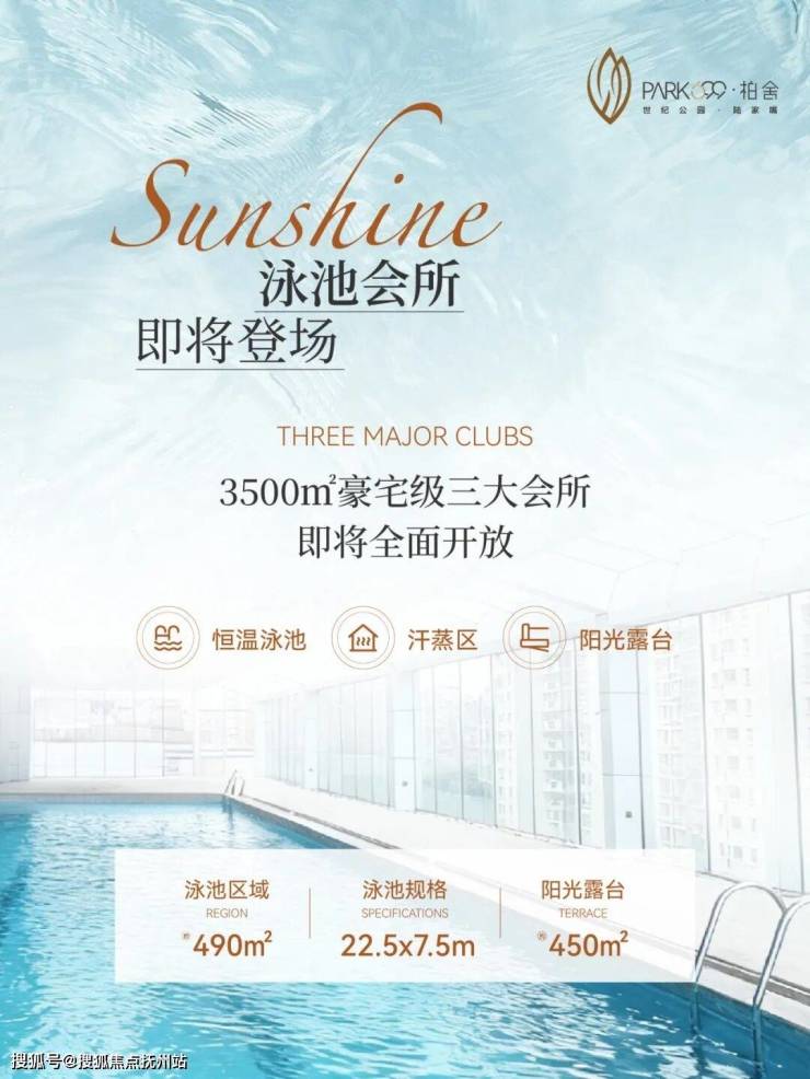 而如今,即将登场的Sunshine泳池会所也已准备就绪,阳光、水波与通透的空间相映,还有池畔露台和汗蒸房,这一切只为兑现您关于度假般日常的所有想象。