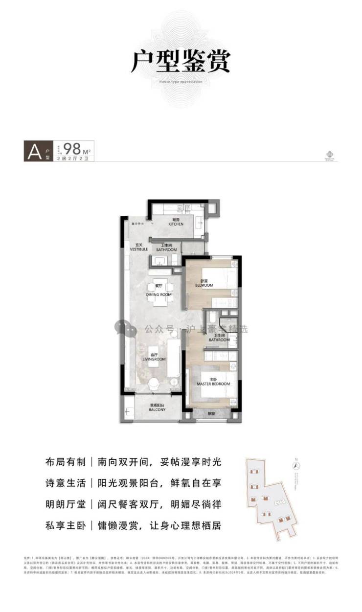 其中,建面约98㎡爆款户型,餐客厅一体化,连贯阔朗阳台,融合多维生活场景,实用性极强;双卧空间较为均衡,酒店式主卧带独立卫浴、观景飘窗;次卧空间宽适,可定制各类功能,适合单身、新婚、小太阳各家庭阶段……相比同面积段户型,以更舒适的空间尺度提升居住体验。