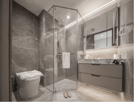 全屋臻选美诺、杜拉维特、高仪、霍尼韦尔、大金(或同档次其它品牌)等全球奢装品牌,营造出更精致、更智能的生活场景;同时配置三玻两腔隔音降噪玻璃隔绝市心喧嚣;新风系统、地暖、中央空调营造四季如春的室内小气候,让业主生活生态健康。