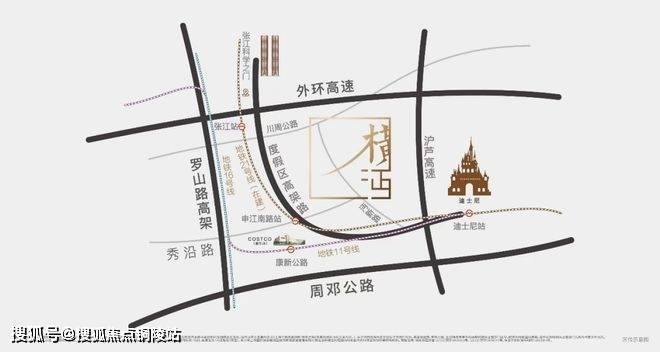 项目坐落于上海浦东外环线旁,占据张江科学城与迪士尼国际旅游度假区交汇的黄金地段,区域发展潜力巨大。项目设计巧妙融合东方禅意美学与国际知名IP元素,在提供舒适居住体验的同时,深度融入文化底蕴,助力城市焕新。项目距建设中的张江科学之门约4.8公里,至迪士尼乐园仅约2公里,显著的区位优势赋予其独特的市场吸引力。