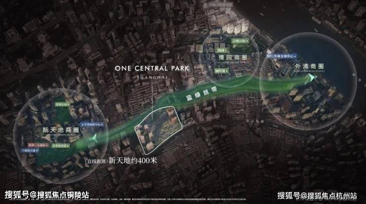 距离新天地直线距离约400米,作为蓝绿丝带规划上的关键节点,随着大新天地东进南拓战略逐步实施,通过水景、绿地和公共空间,串联新天地、豫园、外滩三大世界级商业版图。