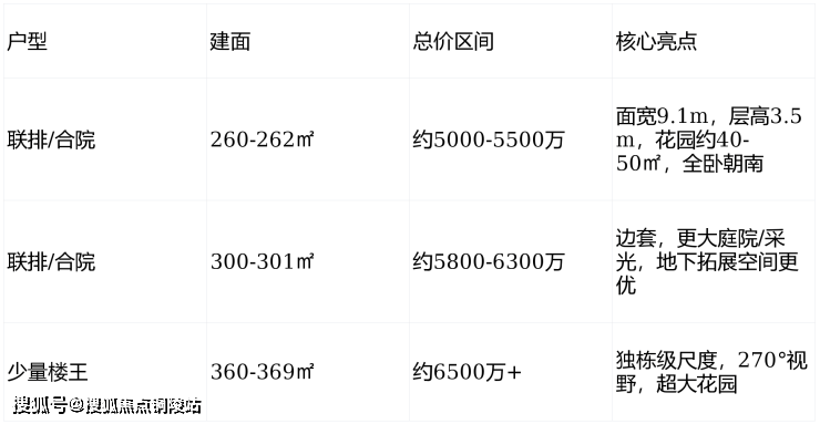 交付/标准:精装交付(嘉格纳、劳芬等顶奢配置);地上3层+阁楼,地下6米层高(可做夹层);高赠送(庭院+露台+地下室,实得约150%-200%)