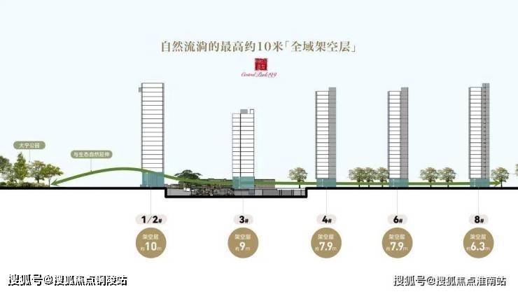 全域架空层,最高达10米,将社区生活平面整体抬升,隔绝尘嚣,营造真正的“悬浮社区”;规划建设人行天桥,直达大宁公园绿地,取之自然,打造无界绿色大宅。