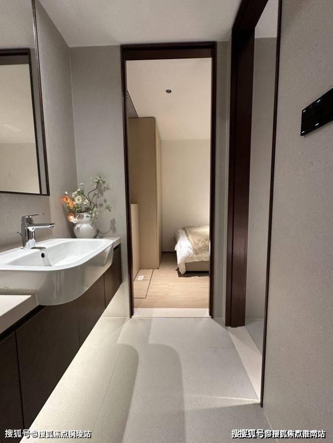 靠户型东侧,样板间设计了一个独立衣帽间和主卧套房的第二个卫浴空间.