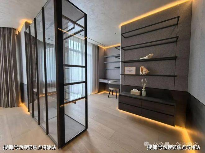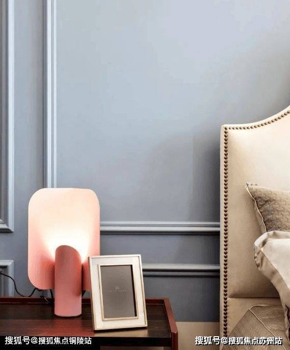 精致镂空床头柜,金属元素的点缀和背景墙金属线条形成呼应,用来营造空间的轻奢质感。