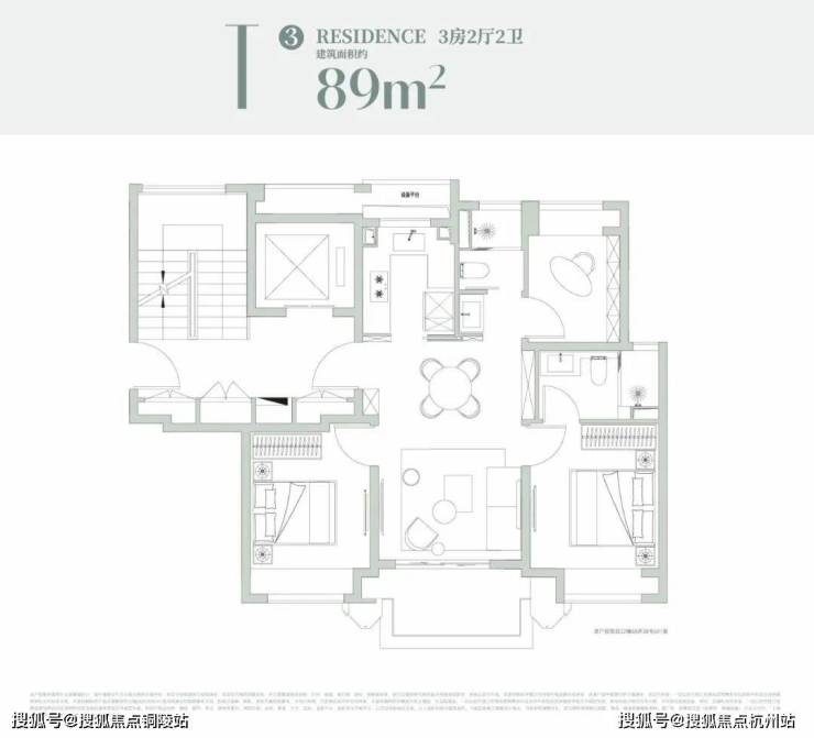 建面约89m²3房2厅2卫