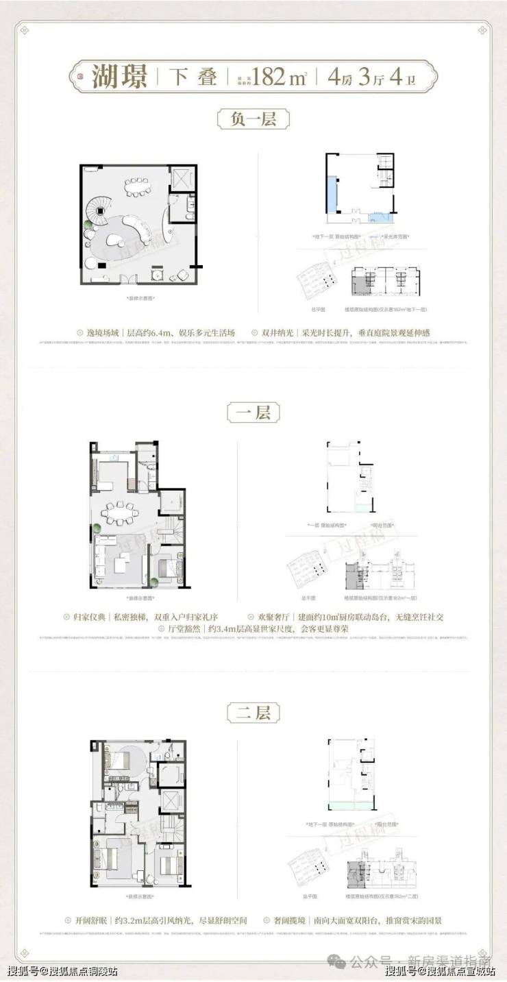 下叠产品主打 “庭院+地下拓展” 的全能改善体验!南向入户庭院,归家仪式感拉满;一层餐客厅层高3.4米,地下室6.4米,空间拓展性极强