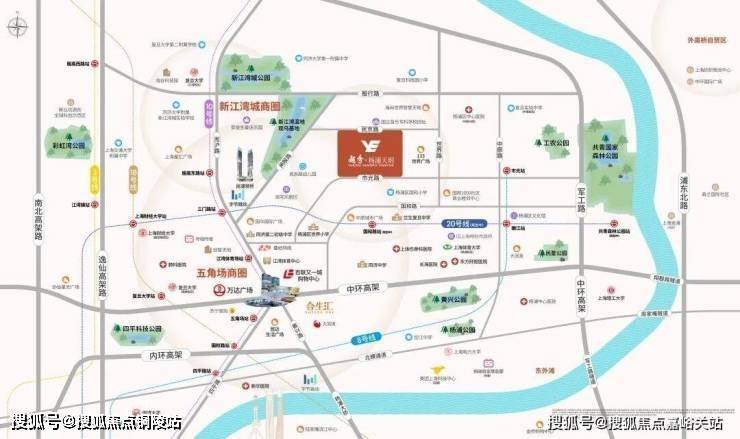【大商圈】直线距离约2.5千米五角场商圈,悦享上海合生汇、上海万达商业广场、百联又一城、悠迈生活广场(原东方商厦)、五角场NS2地块大型商业广场(规划)、苏宁电器广场熟商业