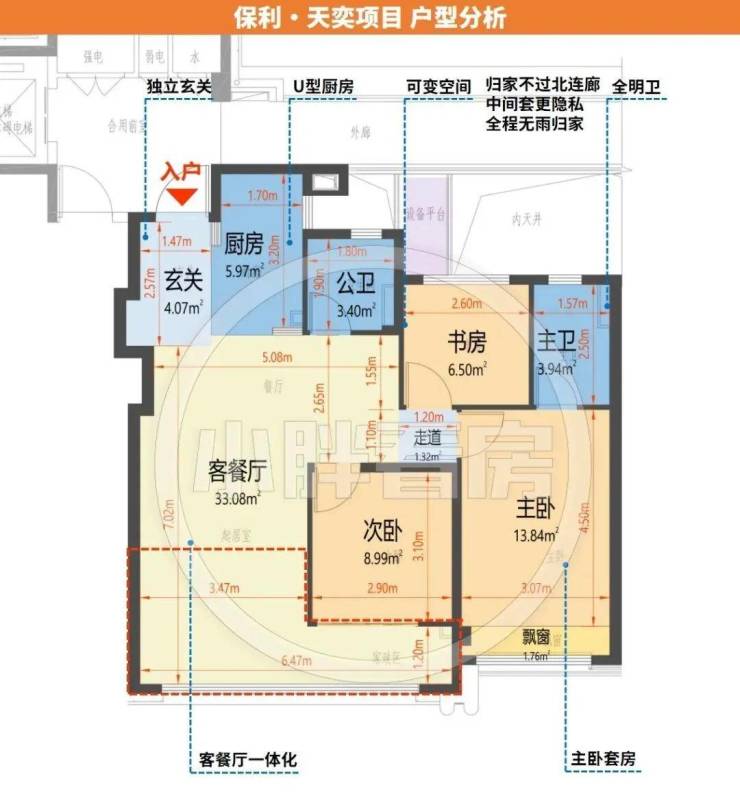 建面约103方B户型: