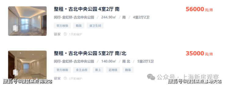 从网上挂牌价格看,古北的大户型房源月租金基本都在35000-55000之间,项目一路之隔的【古北中央公园】,挂牌价格在13-14w左右,161平米的三房,月租金3.8万,可以说投资回报率相当高,而且租客多为驻沪领馆外事人员、外企高管、国际学校陪读家长等,圈层较高且稳定。