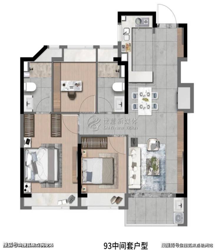 高层建面约93㎡3房2厅2卫