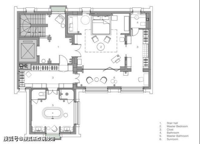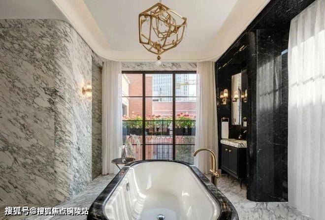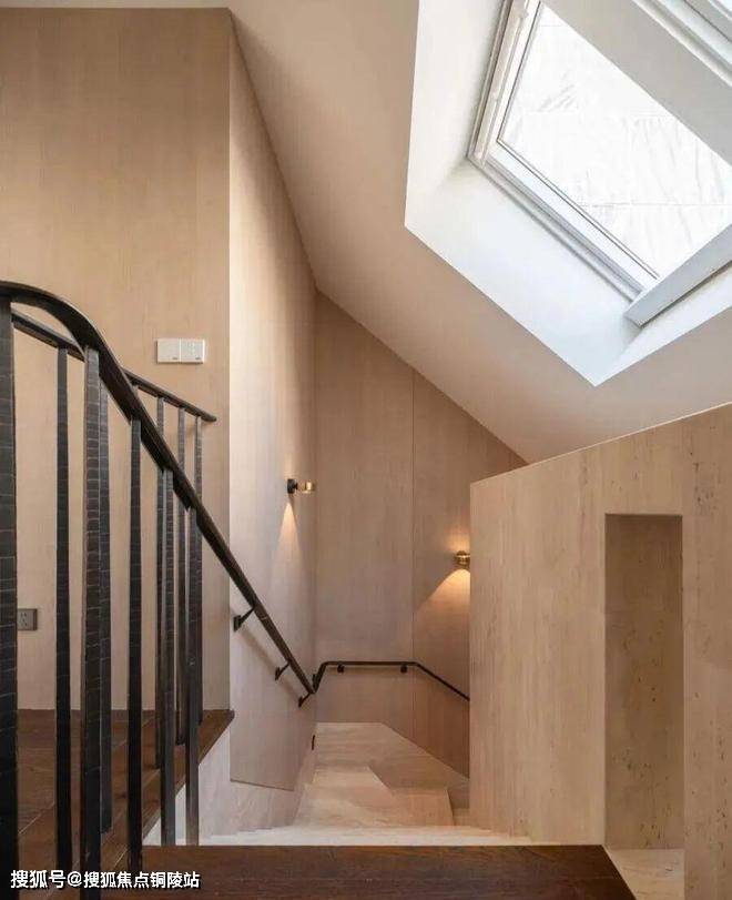 深铜色的栏杆和扶手融合传统与现代语汇,演变出一种当代型态,与现代白色洞石相映成趣,营造出优雅纯粹的意境。