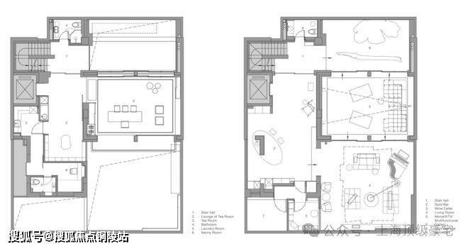 入户体验始于私家庭院。在高密度的城市环境中,庭院为住宅提供了一处解压之地,一缕新鲜空气。因此,在平面布局上,我们将所有重要空间布置在庭院周边,以充分利用庭院空间。