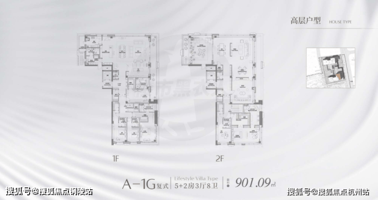 D1地块:约2.1万㎡小高层及联排与独栋,共98套,套均面积282㎡。