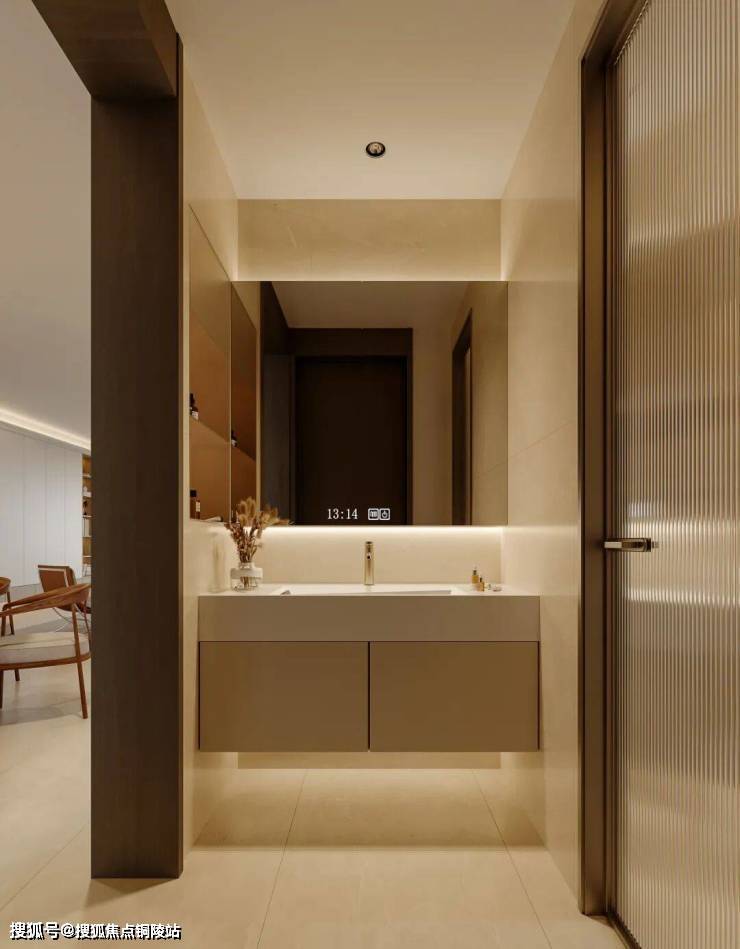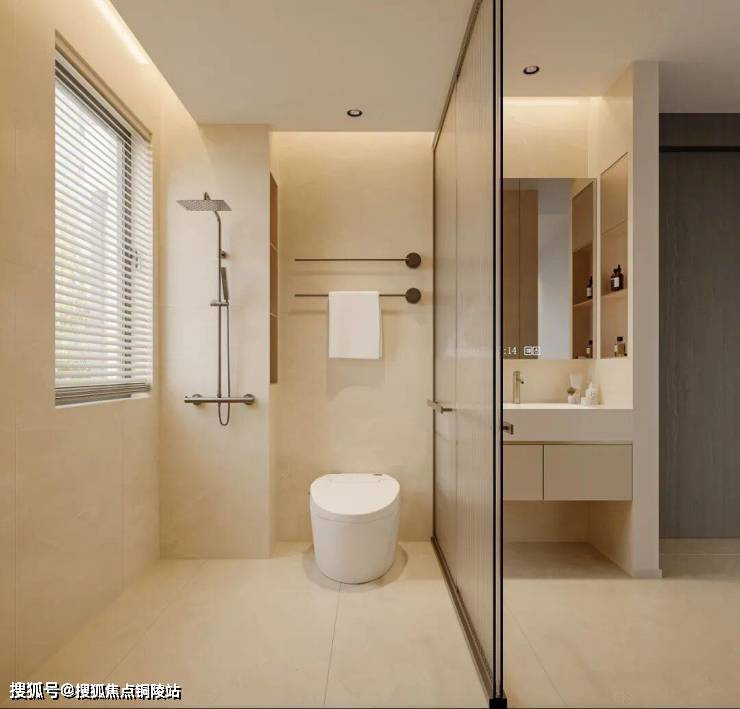 主次卫均采用干湿分离设计,有效划分淋浴区与洗漱区,避免水花四溅导致地面湿滑,保持空间干爽整洁。悬浮浴室柜省地面空间搭配简约洁具,延续整体极简调性,兼顾实用与颜值。