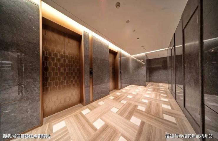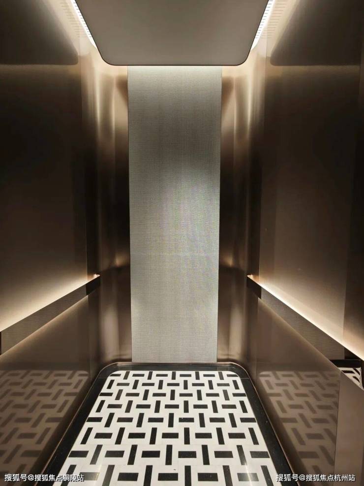 更值得一提的是,项目打造的电梯轿厢都比一般的电梯高,空间感打造上相当出彩,搭配无主灯悬浮吊顶与金属墙面设计,海派归家仪式感拉满!