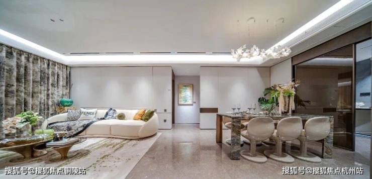 样板间实景尺度奢阔,面宽约4.2米的客厅采光效果好的同时也是相当气派~