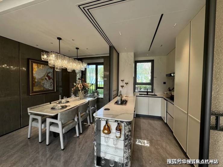 招商中旅·观境的解决方案是“零无效空间”。通过整合餐客厨等公共区域厅,将原来南北厅中间的走廊空间融合到使用空间中,减少过道的面积,避免碎片化的空间带来的冗余浪费。 大面宽,短进深,餐厅与客厅横向相连,每一平方米都物尽其用,把客厅升级为家庭互动主场。