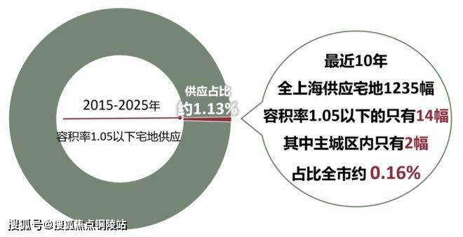 据克而瑞数据统计,2015年-2025年这十年,全上海累计供应1235幅宅地,其中容积率≤1.05的一共只有14块,占比仅约1.13%。更重要的是,这些低密地块绝大多数都地处郊区,主城区的凤毛麟角,仅有2幅!
