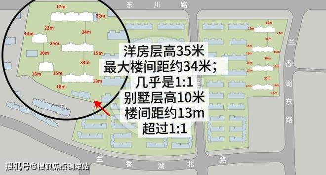 10米高的别墅,楼间距做到了13m左右!墅境洋房35米的层高,最大的楼间距做到了34m!