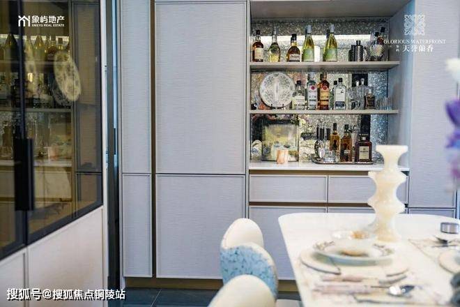 另外,餐厅两侧均预留餐边柜位置,是两个交付的冰箱位置,增加更多的收纳。