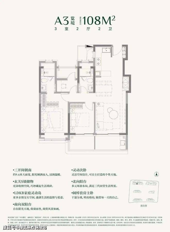 建面约108㎡3房的三阳台面积就高达约13㎡。(阳台仅附赠一半面积)