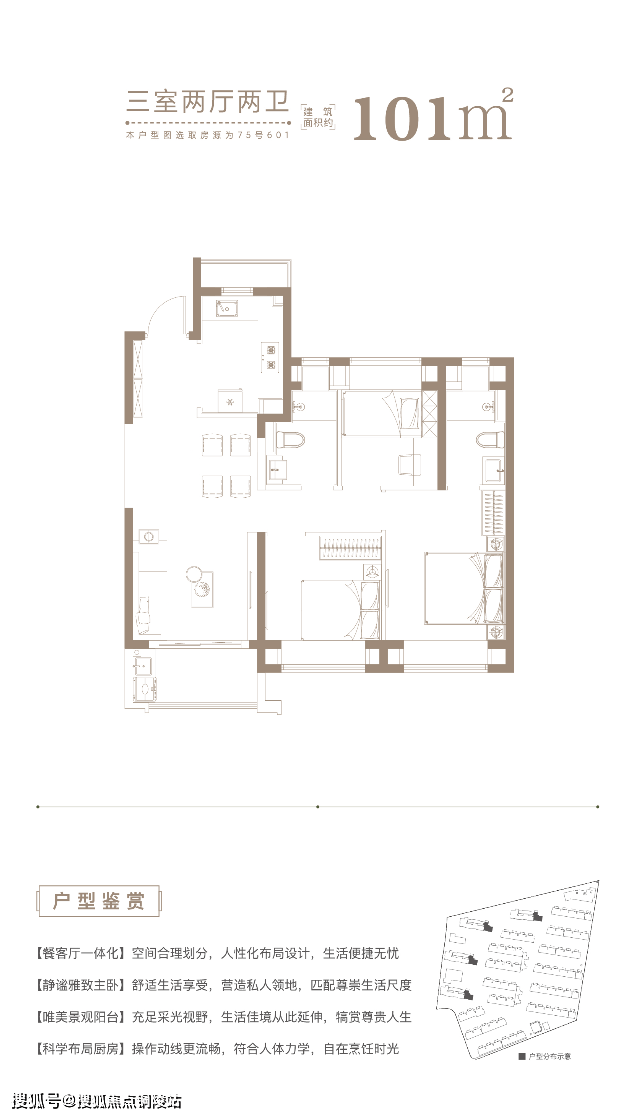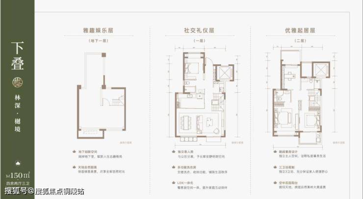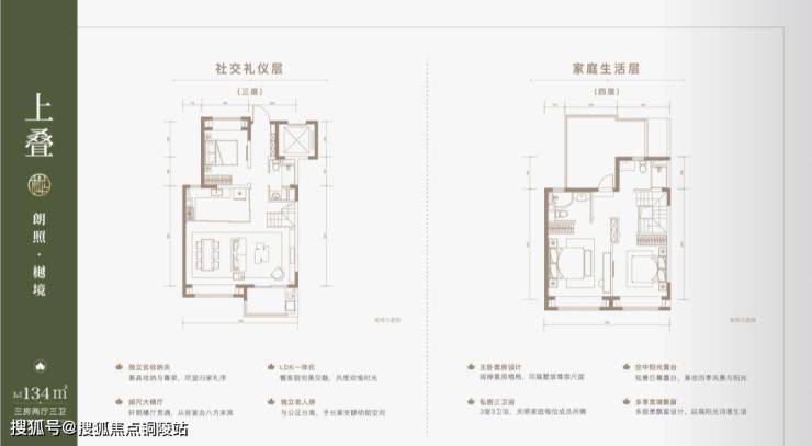 二层双南大套房+南向阔景飘窗+三卫的设计,空间层层递进,尊崇有序。