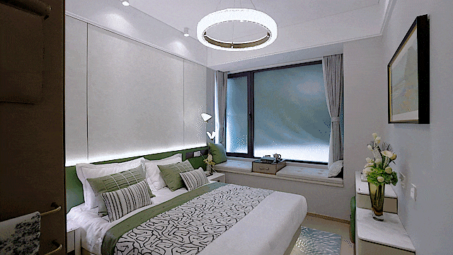 【归家礼序】以一轴一带多境的格局,打造迎宾客厅、仪式水景、景观连廊、艺术水苑、森氧绿境、精装大堂六重归家礼序。