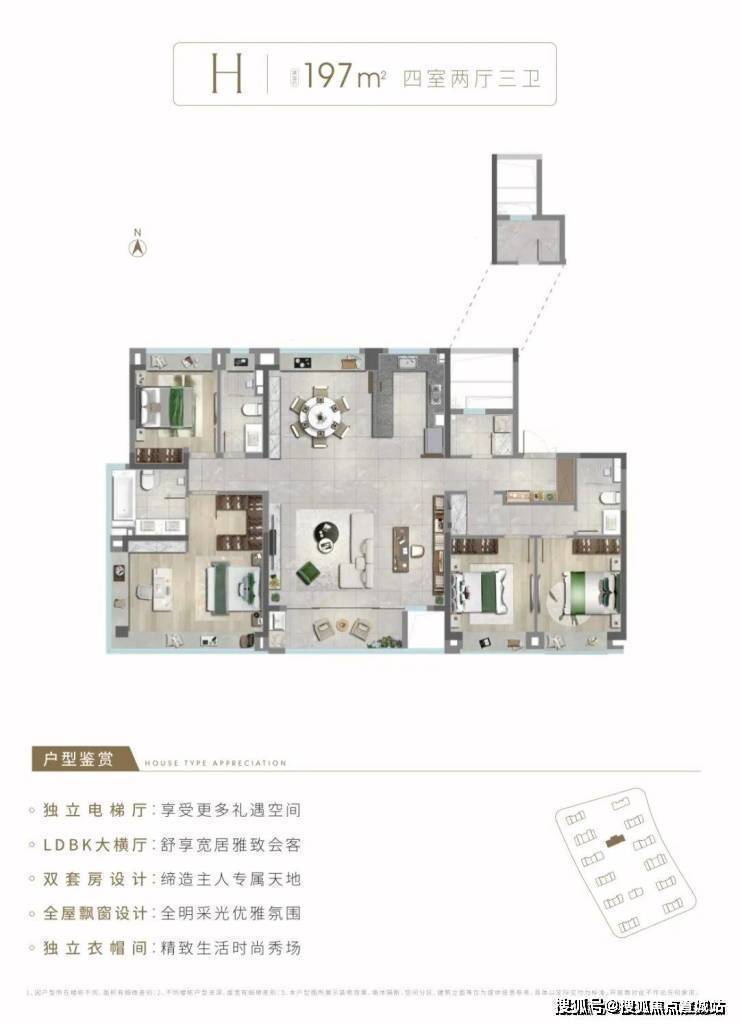 【建筑风格】现代简约风,外立面采用大面积玻璃加铝板,打造非对称L型立面,材质造价更高,抗腐蚀性程度更高。