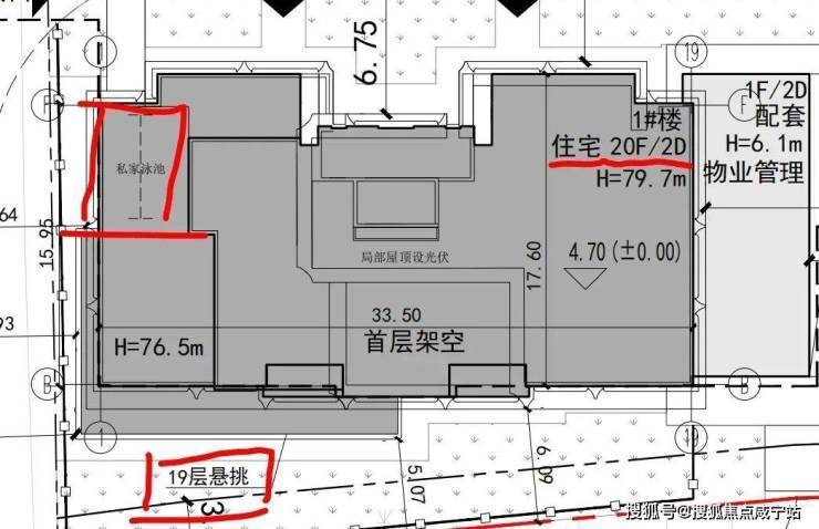 4)不负众望的产品品质:从公示设计方案看,该盘有几个特点。其一,全架空层。其二,三处水景加一个下沉庭院。其三,顶层复式会有私家泳池。其四,预计层高达到3.5米。