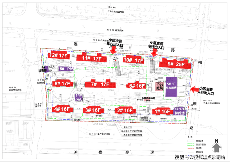根据项目设计方案显示,拟建11栋16-25层高层住宅。其中1号楼靠近17层的保障房,5号口为3层的配套用房,14#、15#为P站,16#为垃圾用房。