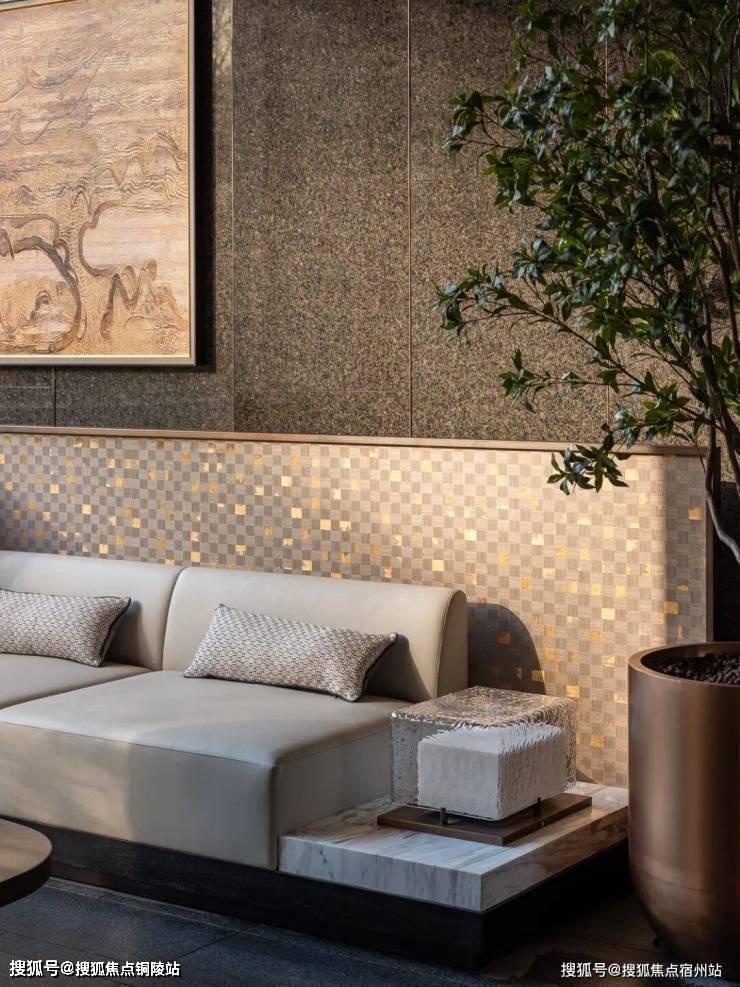 黄金丝绸大理石流转着真丝般的光泽,白玉与卡里冰玉小台映照天光云影。